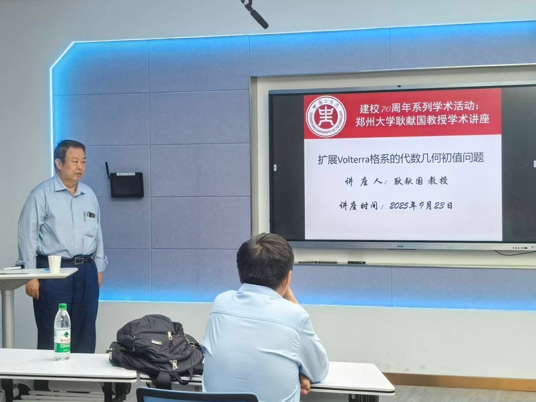 9月23日,应我校科技处和ok138太阳集团邀请,郑州大学耿献国教授在龙湖校区作题为《Algebro-geometric quasi-periodic solutions to the hierarchy of extended Volterra lattices》的学术报告。报告由ok138太阳集团院长闫振亚教授主持,学院部分教师和研究生参加讲座。